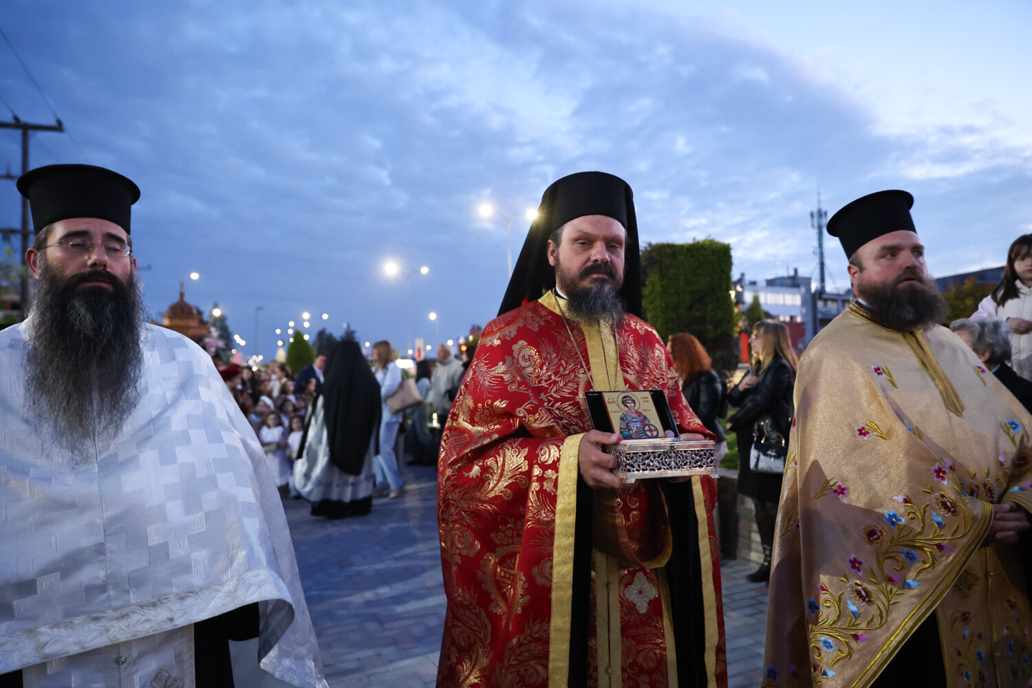 Μετά το πέρας της Ιεράς Παράκλησης ακολούθησε η Λιτανεία της εικόνας του Αγίου, συνοδεία της Φιλαρμονικής της Ενοριακής Συντροφιάς «Γαλιλαία».