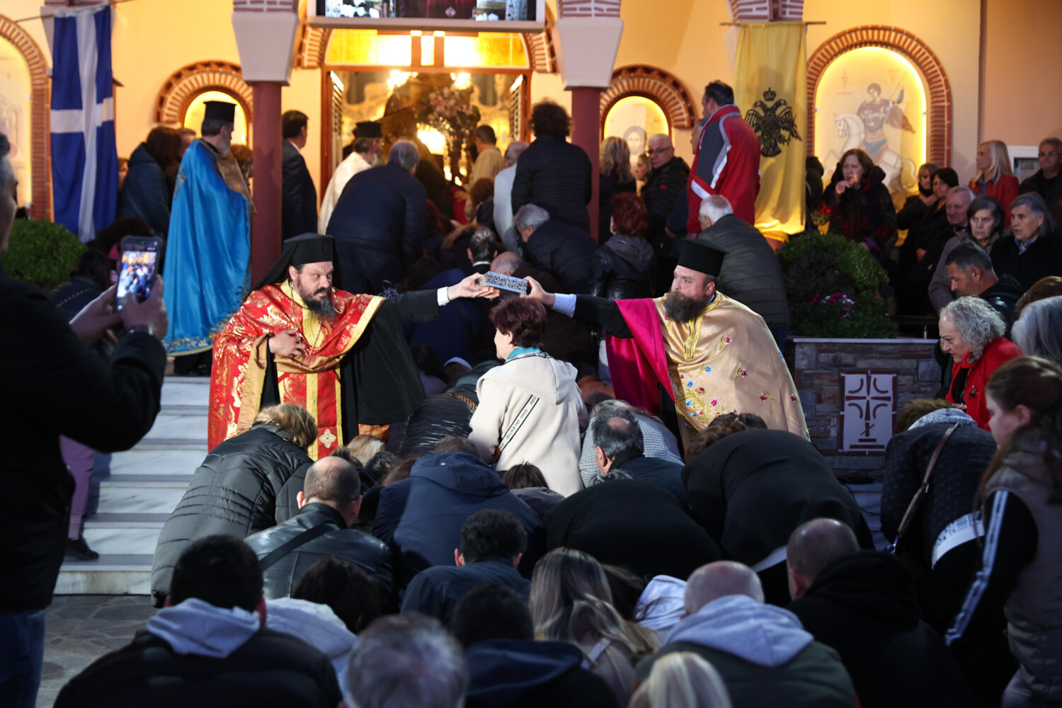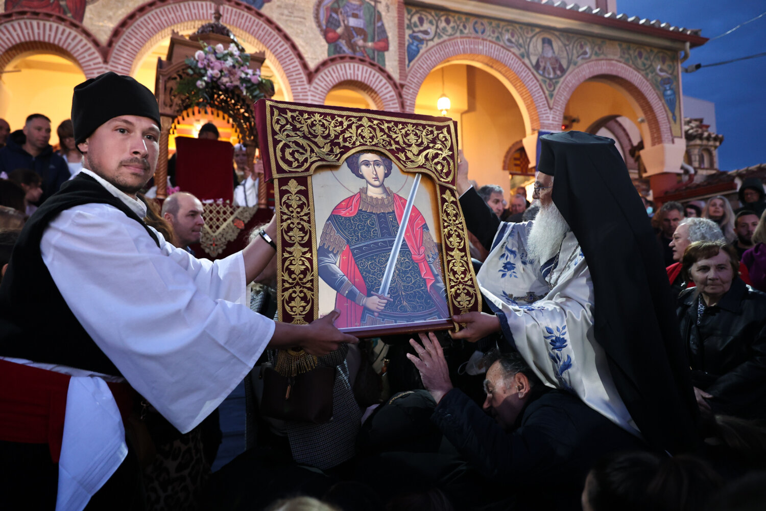 Πλήθος πιστών προσήλθε σήμερα, το απόγευμα στον μεθεόρτιο εσπερινό του Ιερού Ναού Αγίου Γεωργίου του Μεγαλομάρτυρος στη Λάρισα.