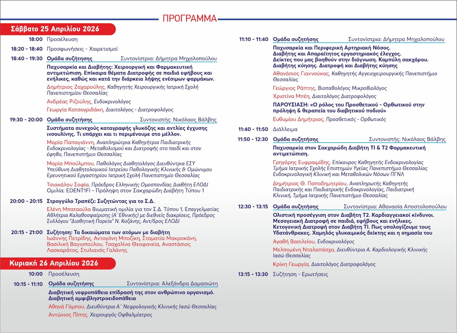 Η 3η Επιστημονική Διημερίδα του Συλλόγου Λάρισας Διαβήτη με θέμα: «Ο Διαβήτης αλλιώς… Νέες τεχνολογίες. Παχυσαρκία-Γνώση Ενημέρωση» θα πραγματοποιηθεί στις 25 Απριλίου, ημέρα Σάββατο & 26 Απριλίου, ημέρα Κυριακή, στην αίθουσα εκδηλώσεων του ξενοδοχείου Διόνυσος ,στην Λάρισα.