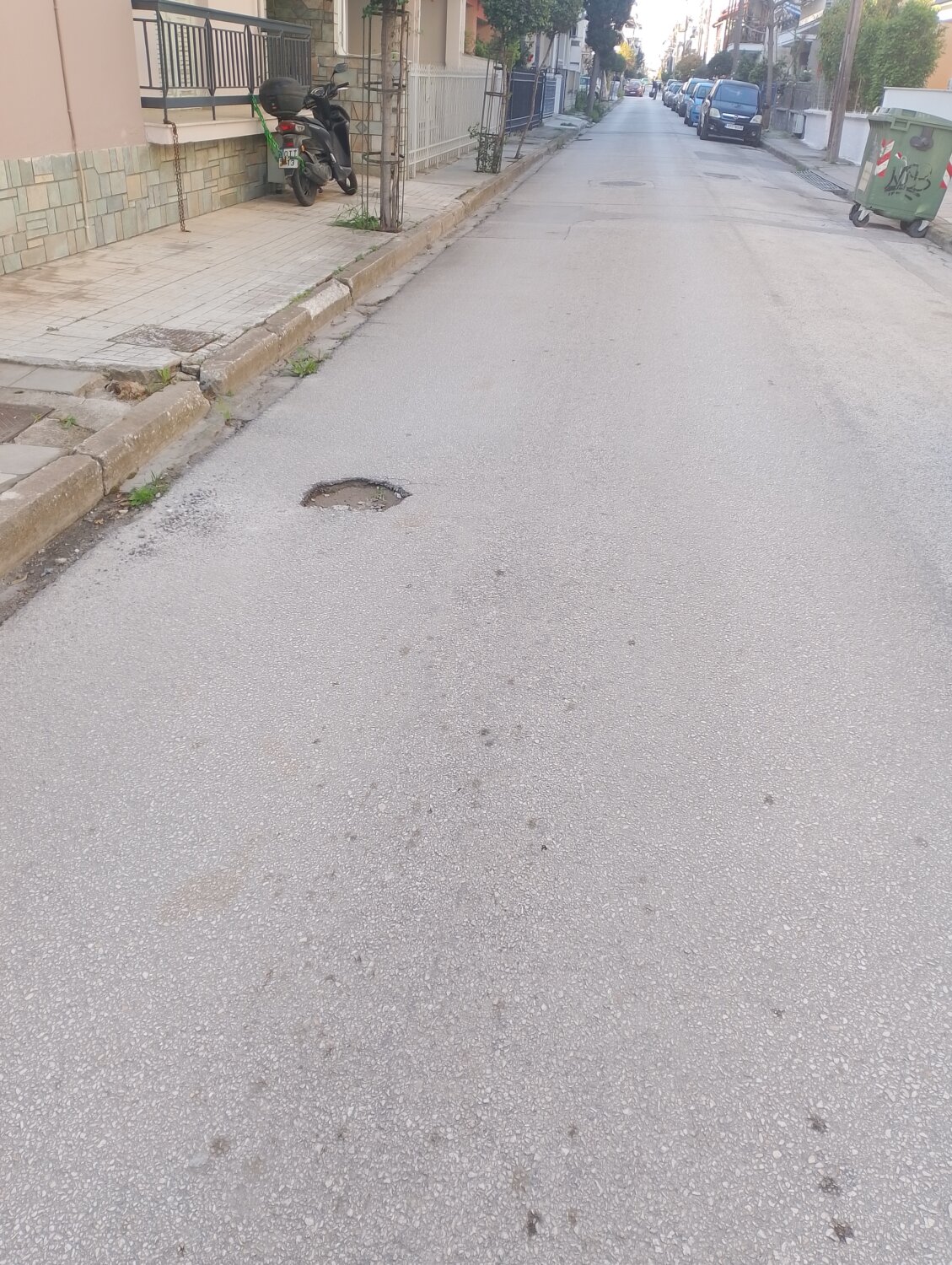 «Εδώ και κάμποσο καιρό η λακκούβα της φωτογραφίας που αποστέλλω χάσκει στο κέντρο της οδού Σερίφου στο ύψος του αριθμού 44. Παρακαλώ για την βοήθεια σας έτσι ώστε να καλυφθεί ούτως ώστε να αποφευχθούν ανεπιθύμητες καταστάσεις οδικής και όχι μόνο ασφαλείας».