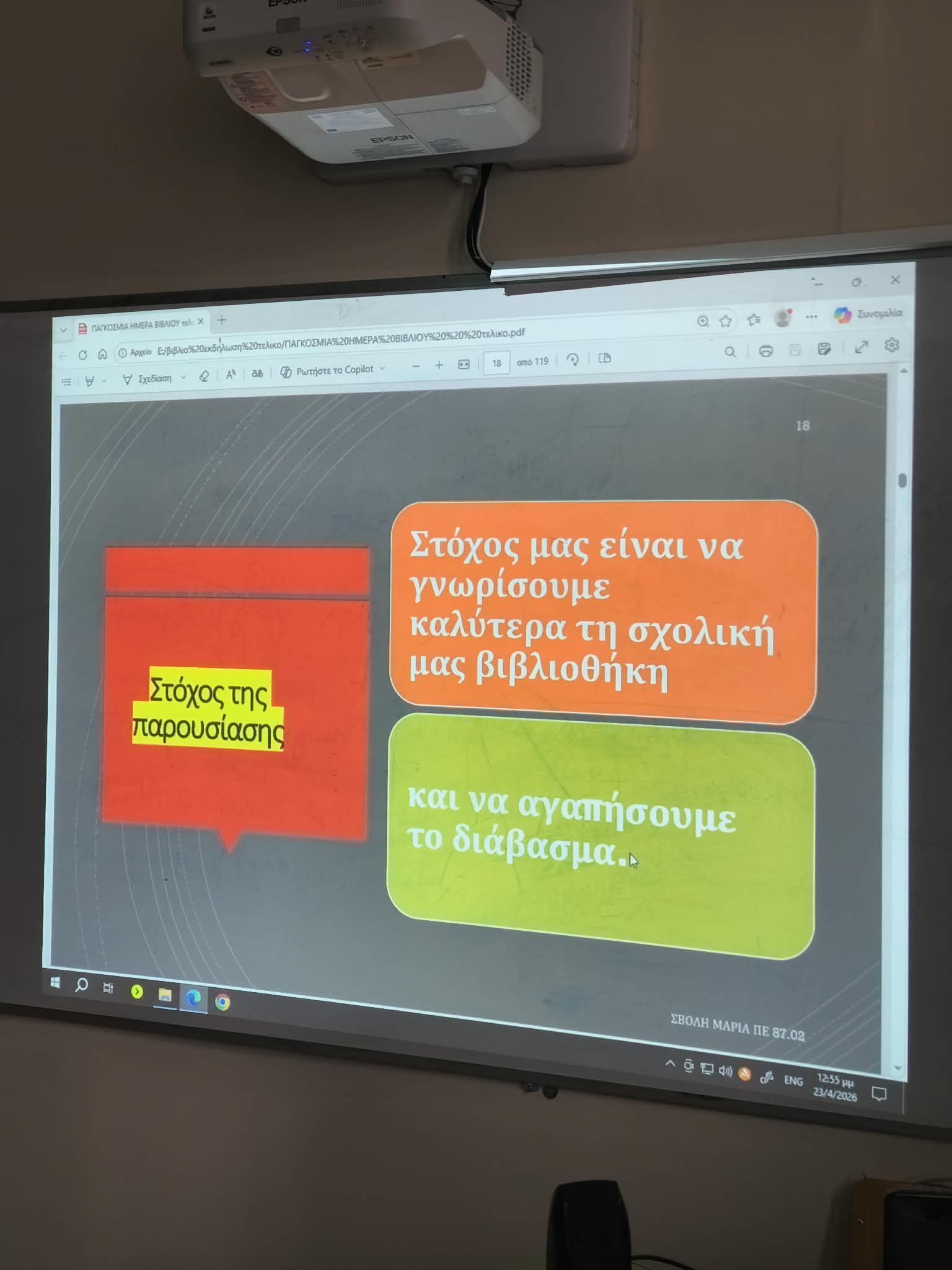 Με ιδιαίτερη επιτυχία πραγματοποιήθηκε διήμερη εκδήλωση αφιερωμένη στην Παγκόσμια Ημέρα Βιβλίου στο αμφιθέατρο του 7ου ΕΠΑΛ Λάρισας, την Τετάρτη 22 και την Πέμπτη 23 Απριλίου 2026 τις 2 τελευταίες ώρες.