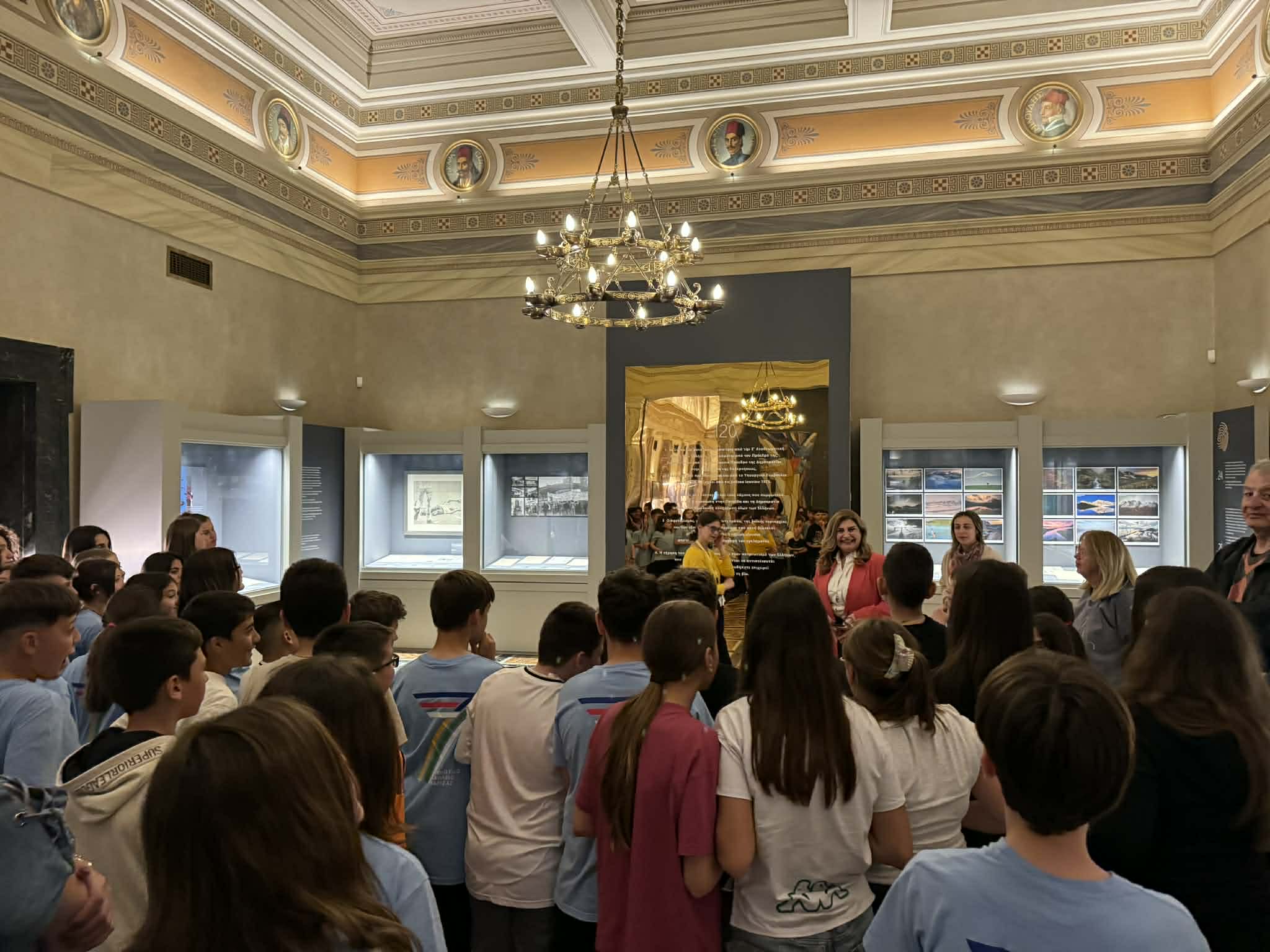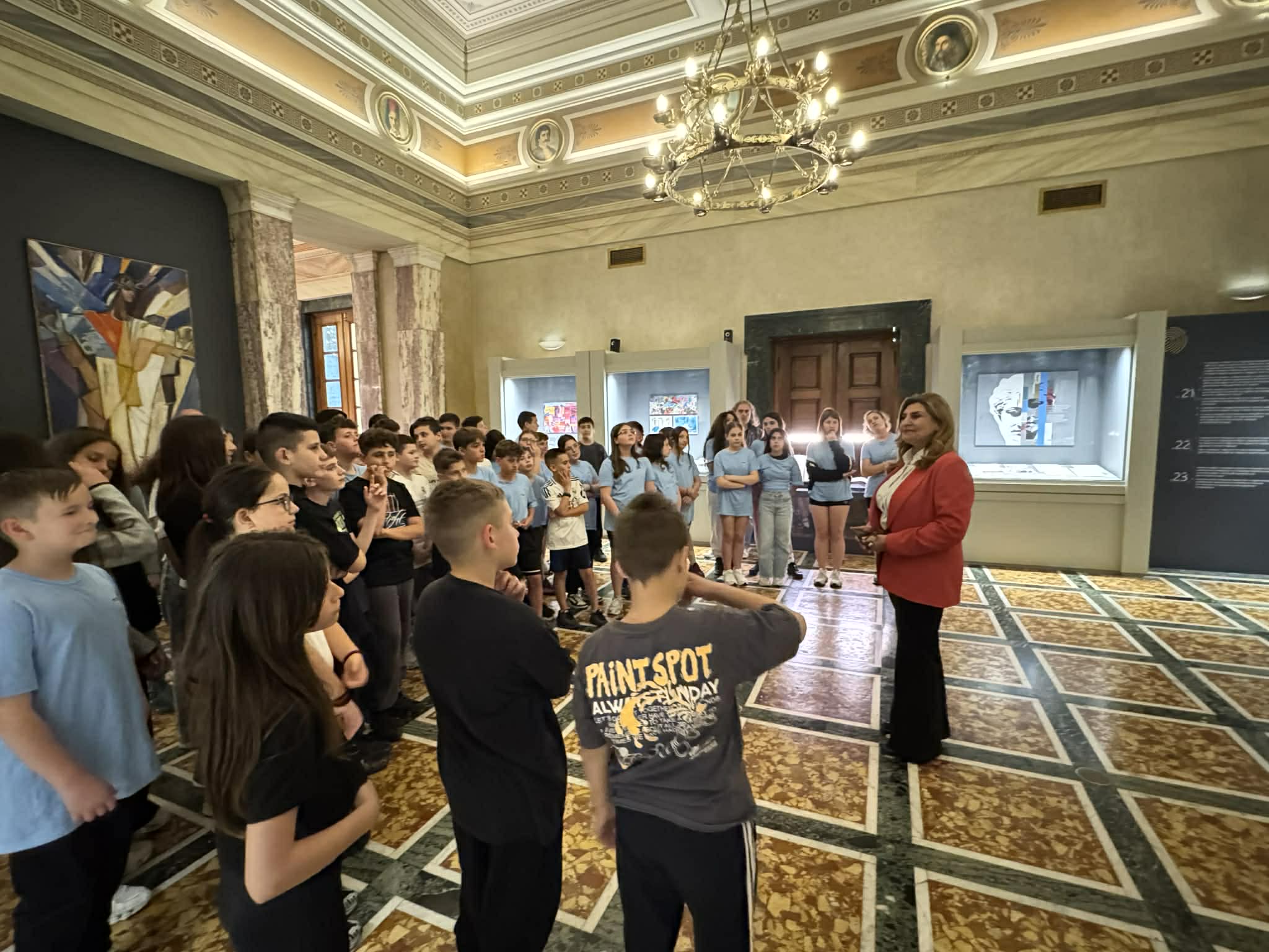Παράλληλα, εξήγησε στα παιδιά βασικές πτυχές της λειτουργίας της Βουλής, τον ρόλο των βουλευτών και τη σημασία των νόμων στη ζωή των πολιτών, επιδιώκοντας να τους μεταφέρει μια πρώτη ουσιαστική εικόνα της κοινοβουλευτικής διαδικασίας. Η συζήτηση εξελίχθηκε σε έναν ζωντανό διάλογο, με τους μικρούς μαθητές να εκφράζουν απορίες και σκέψεις για τη Δημοκρατία και τη λειτουργία του κράτους.