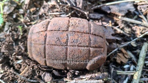 Μια οξειδωμένη χειροβομβίδα βρέθηκε στο δάσος έξω από το χωριό Νόστιμο Ευρυτανίας, κατά τη διάρκεια εργασιών υλοτομίας.
