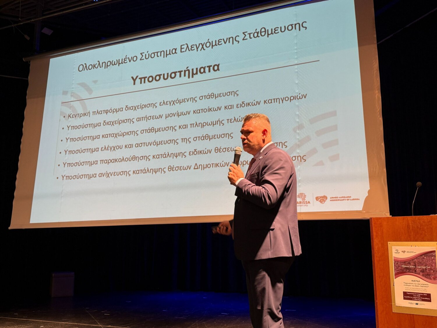 «Πολλοί άνθρωποι έχουν δουλέψει για όλες αυτές τις εφαρμογές κι αυτοί είναι οι υπάλληλοι του Δήμου Λαρισαίων», ανέφερε στην αρχική του τοποθέτηση ο Αντιδήμαρχος Δημοτικής Αστυνομίας και Κυκλοφοριακών Παρεμβάσεων, κ. Κωνσταντίνος Αργυρόπουλος. Οι ιδιαίτερες αναφορές που έκανε στις έξυπνες διαβάσεις πεζών και την ανάλυση της κυκλοφορίας τράβηξαν το ενδιαφέρον του κοινού. «Από την ευρεία χρήση των εφαρμογών, θα μπορέσουμε να εξάγουμε συμπεράσματα για το πόσο μπορούν να διευκολύνουν την καθημερινότητά μας», σημείωσε χαρακτηριστικά.
