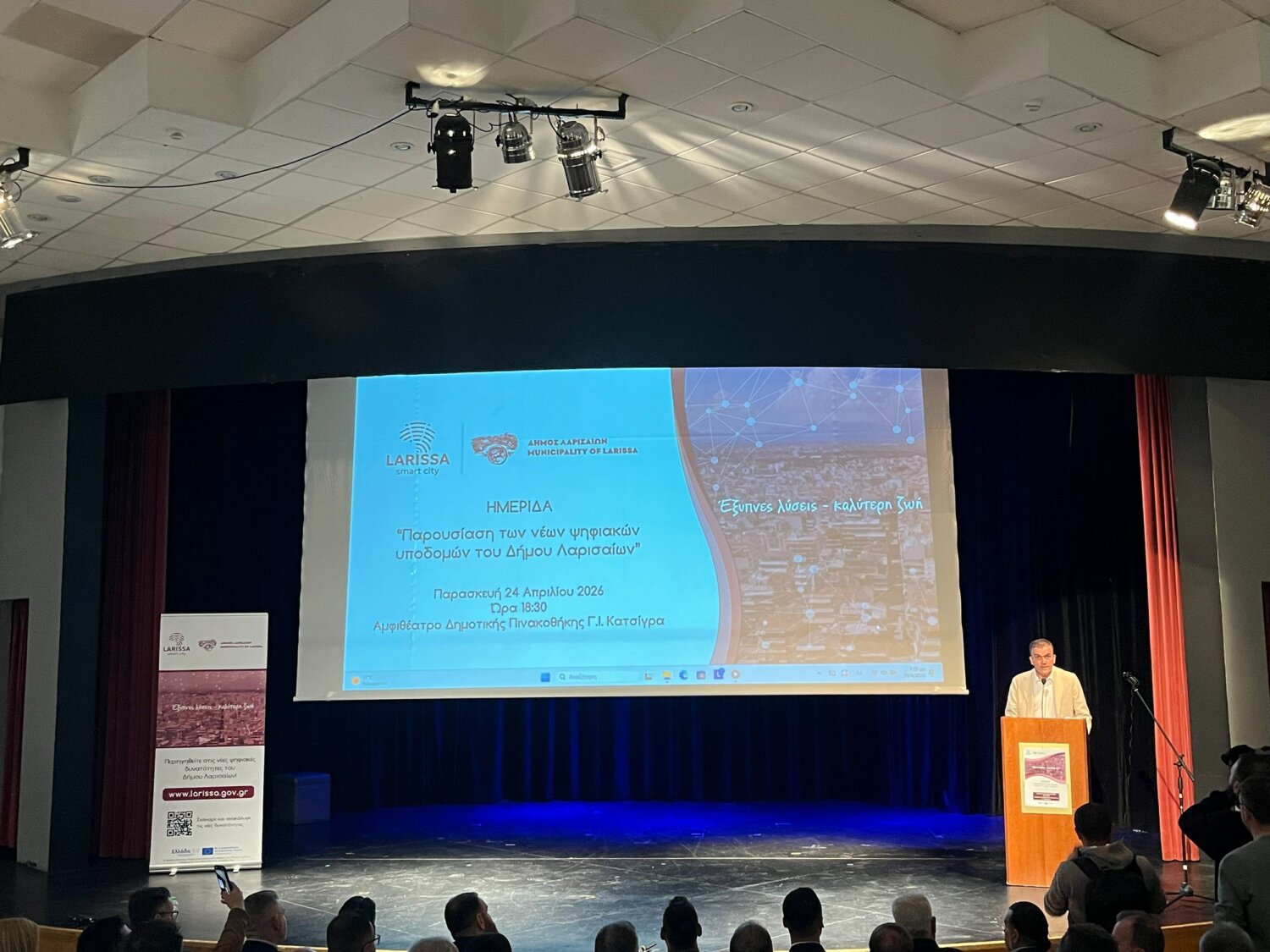 Τα νέα ψηφιακά εργαλεία που υιοθετεί και οι εφαρμογές που αναπτύσσει ο Δήμος Λαρισαίων παρουσιάστηκαν το απόγευμα της Παρασκευής, 26 Απριλίου. Πρόκειται για εργαλεία που έχουν αναπτυχθεί στο πλαίσιο του έργου «Έξυπνη Πόλη Λάρισα», που ολοκληρώνεται και εγκαινιάζει σειρά ψηφιακών λειτουργιών και δυνατοτήτων, που αναδιαμορφώνουν τη διάδραση των πολιτών με τον Δήμο και ενισχύουν τη διαφάνεια και την εμπιστοσύνη.