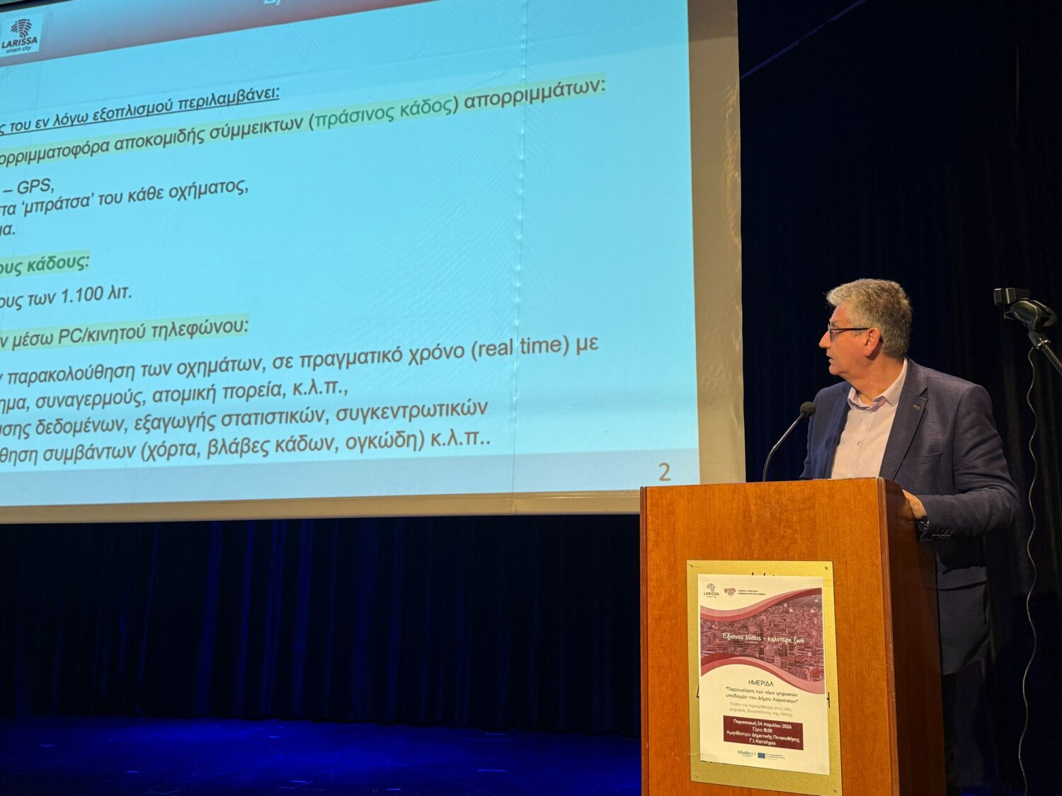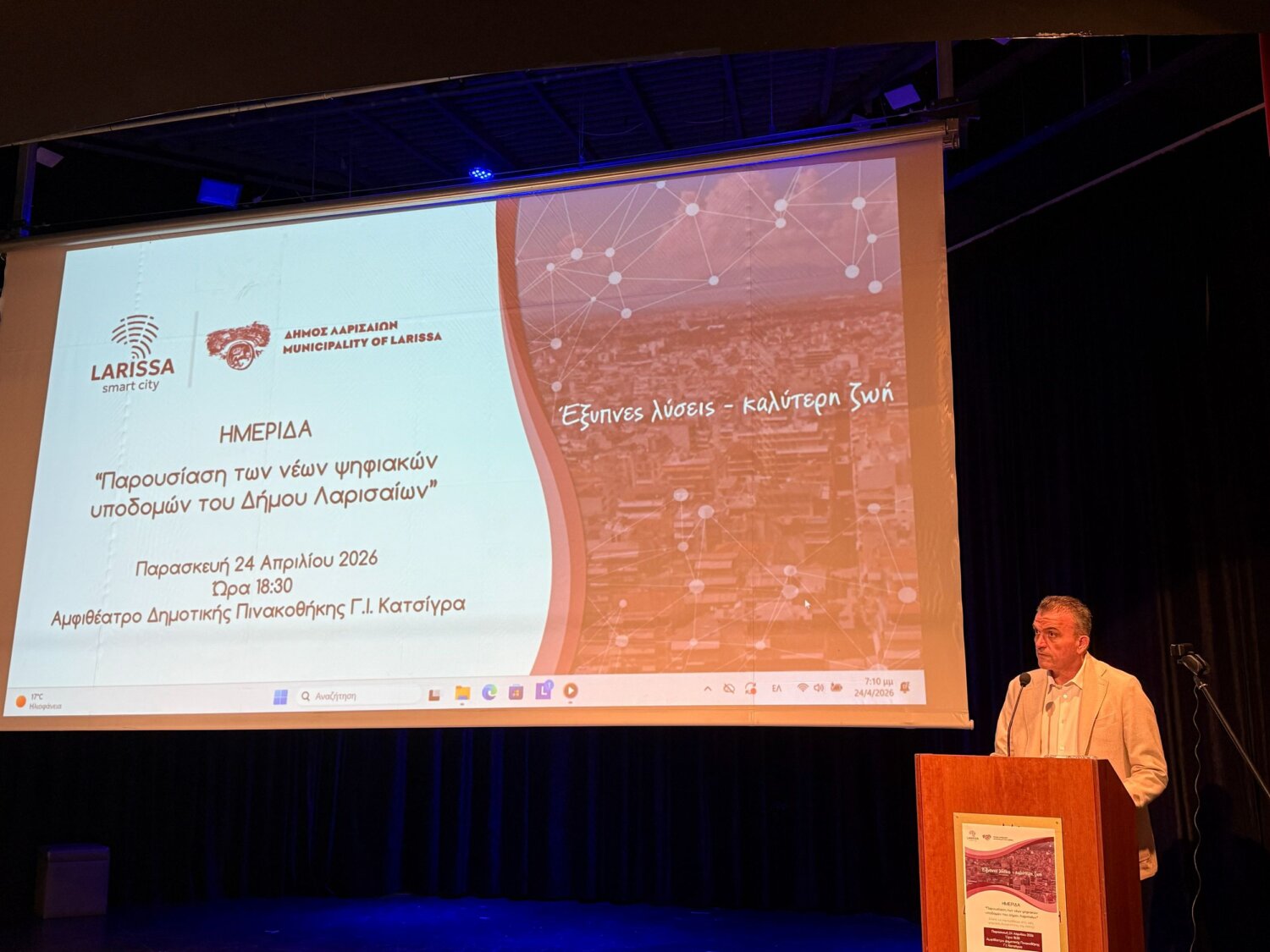 Ο ίδιος έκανε αναφορά στο σύστημα τηλεδιάσκεψης για συμμετοχή των πολιτών στα Δημοτικά Συμβούλια, το Data Hub του Δήμου Λαρισαίων θέτοντας ως παράδειγμα το χώρο του Νέοι Κοιμητηρίου.