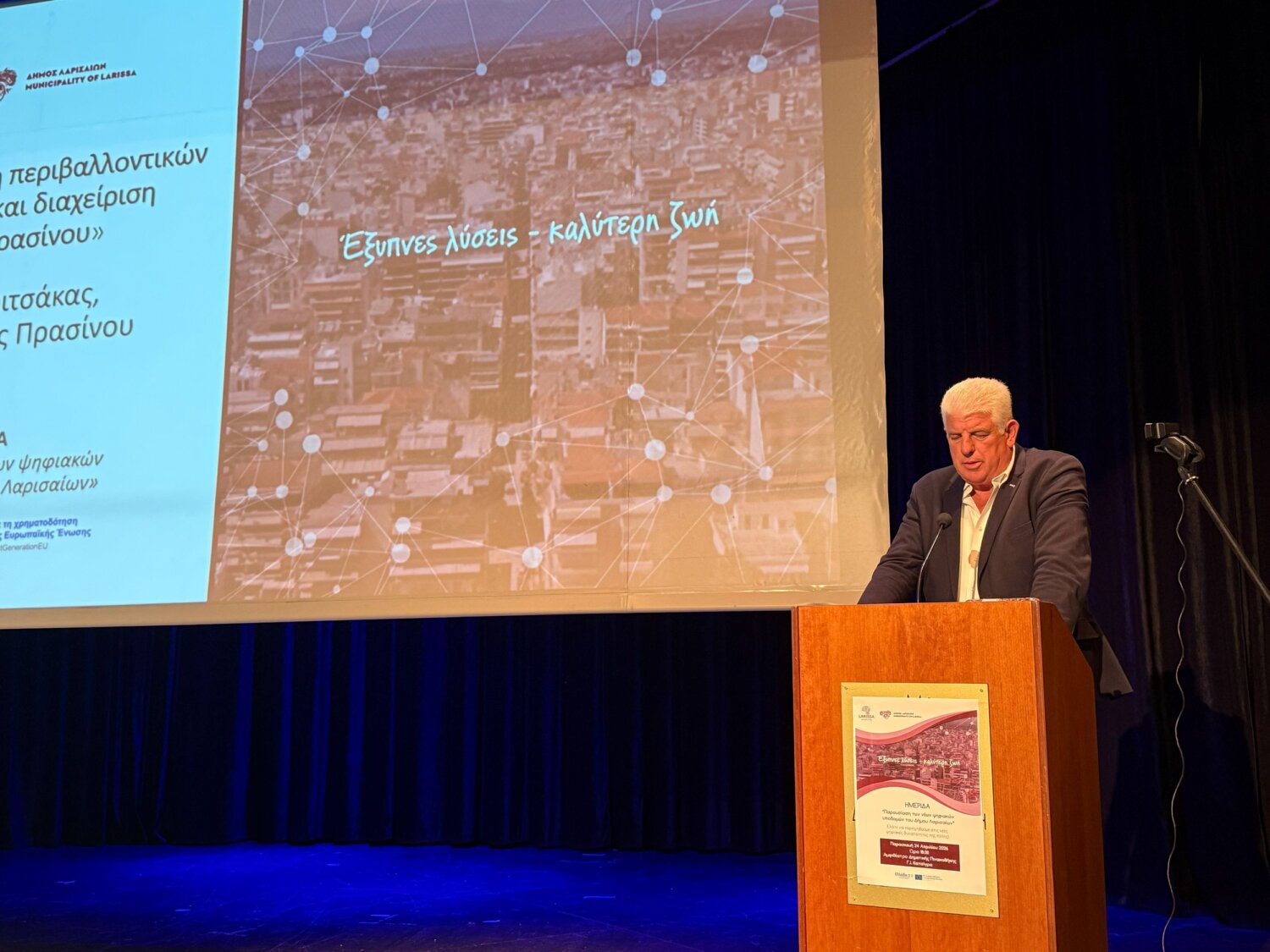 Το έργο «Έξυπνη Πόλη Λάρισα» υλοποιήθηκε στο πλαίσιο της δράσης «Έξυπνες πόλεις» του Εθνικού Σχεδίου Ανάκαμψης και Ανθεκτικότητας «Ελλάδα 2.0», με τη χρηματοδότηση της Ευρωπαϊκής Ένωσης-NextGenerationEU.