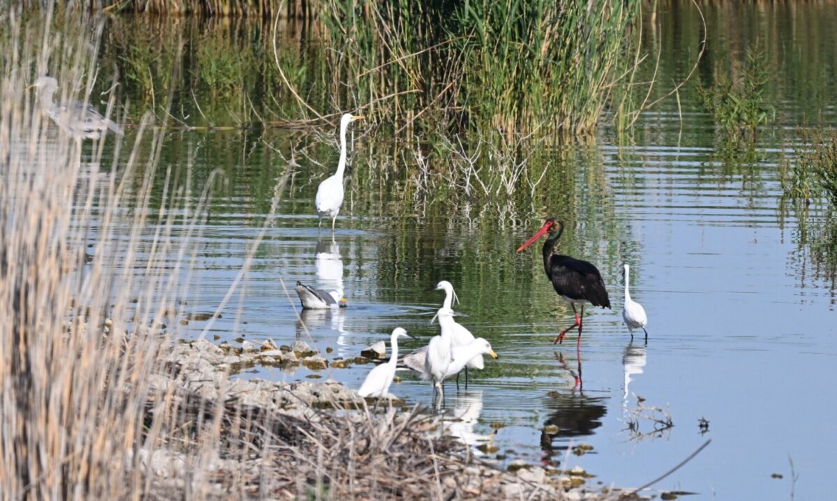Ένας σπάνιος μαυροπελαργός έκανε την εμφάνισή του στα νερά της Κάρλας και καταγράφηκε από τον φακό του Νίκου Λευκαδίτη.