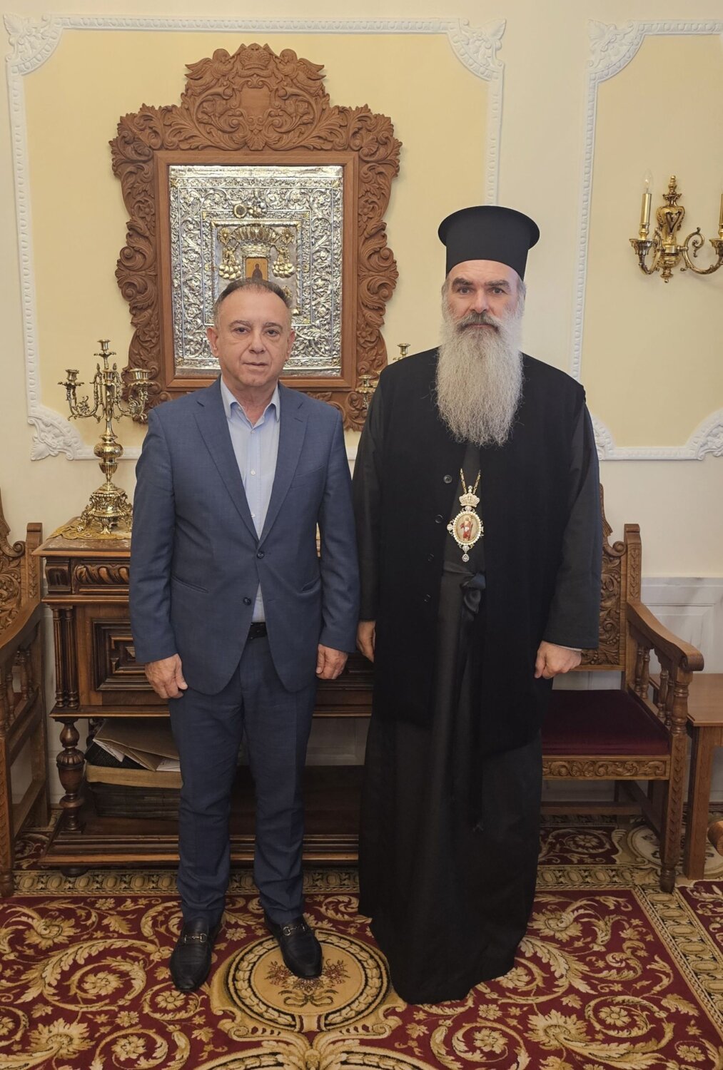 Κατά τη διάρκεια της συνάντησης, η οποία πραγματοποιήθηκε σε ιδιαίτερα θερμό και εποικοδομητικό κλίμα, οι δύο άνδρες αφού αντάλλαξαν ευχές για το Πάσχα, συζήτησαν θέματα, που αφορούν την τοπική κοινωνία και την ενίσχυση του ρόλου της Εκκλησίας στη στήριξη των ευπαθών ομάδων και στη διατήρηση της κοινωνικής συνοχής.