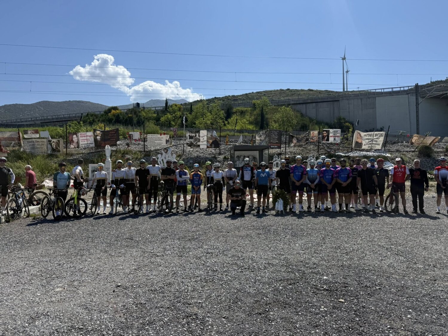 Οι ποδηλάτες ξεκίνησαν από τα Τρίκαλα και έφτασαν μέχρι το Μνημείο στα Τέμπη, όπου κατέθεσαν στεφάνι.