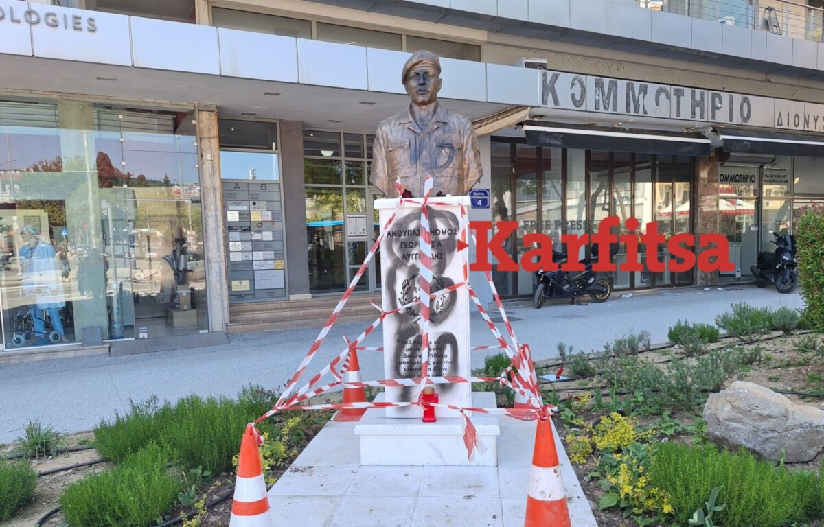 Ειδικότερα, άγνωστοι μουτζούρωσαν με μαύρο σπρέι την προτομή του Γιώργου Λυγγερίδη. Το σημείο πλέον έχει κλείσει με κορδέλες.