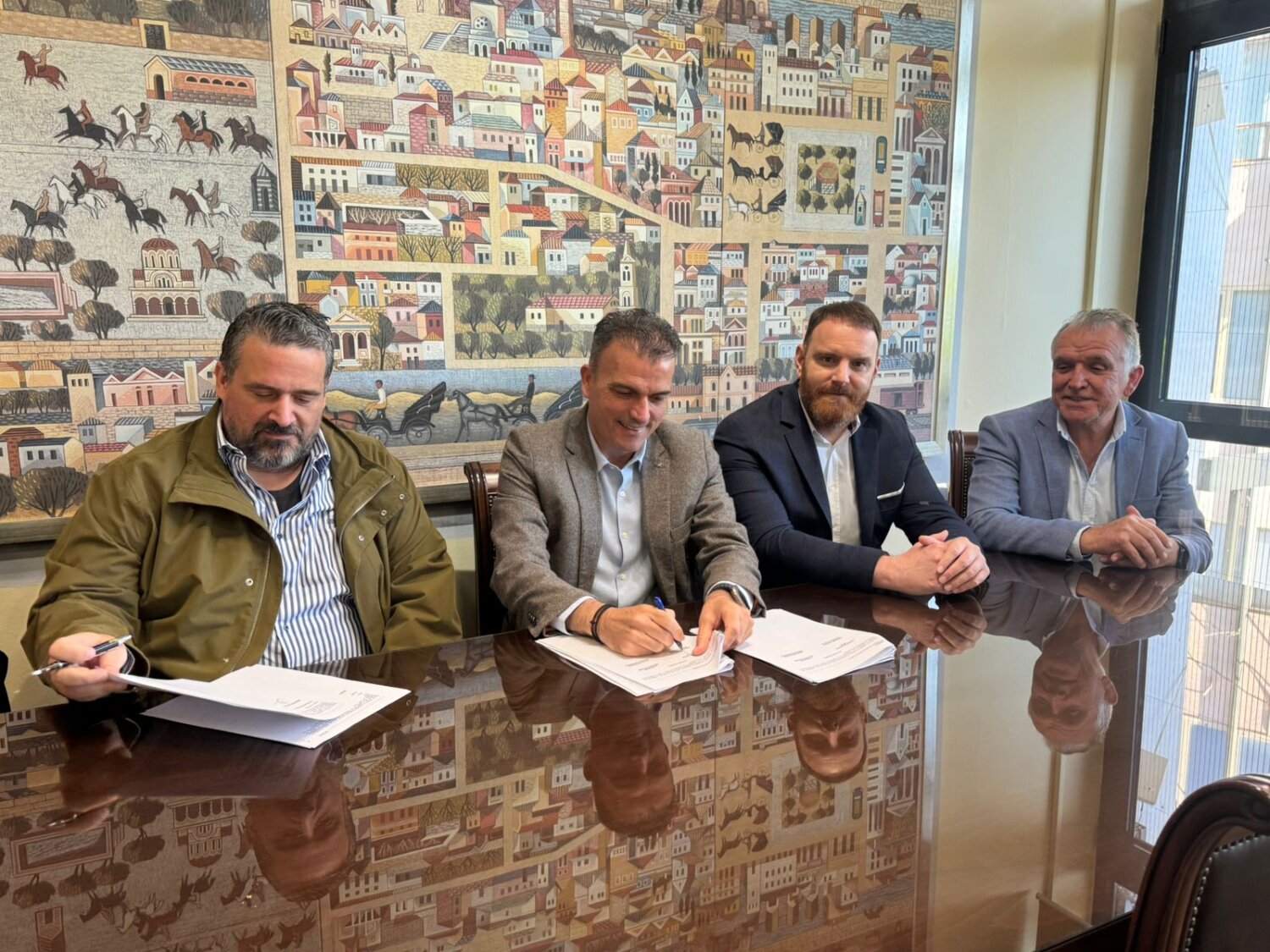 Η υπογραφή της σχετικής σύμβασης του έργου «3/25 Τοπικές Αντικαταστάσεις Τμημάτων Αγωγών Δικτύων Αποχέτευσης και Ύδρευσης» πραγματοποιήθηκε την περασμένη Παρασκευή (24.04), στο Δημαρχείο Λάρισας, από τον Δήμαρχο Λαρισαίων και Πρόεδρο της ΔΕΥΑ Λάρισας, κ.Θανάση Μαμάκο και τον εκπρόσωπο της εταιρίας «Αφοί Σούρλα» ΑΤΕΒΕ, κ. Δημήτριο Σούρλα, παρουσία του Αντιπροέδρου της Δημοτικής Επιχείρησης, κ.Κωνσταντίνου Καλόγηρου, του Γενικού Διευθυντή, κ.Δημήτρη Σαββοργινάκη, της Διευθύντριας Τεχνικής Υπηρεσίας της ΔΕΥΑΛ, κ.Άννας Ζαχίδου και του κ.Κασσαβέτη, εκπροσώπου της αναδόχου εταιρείας.