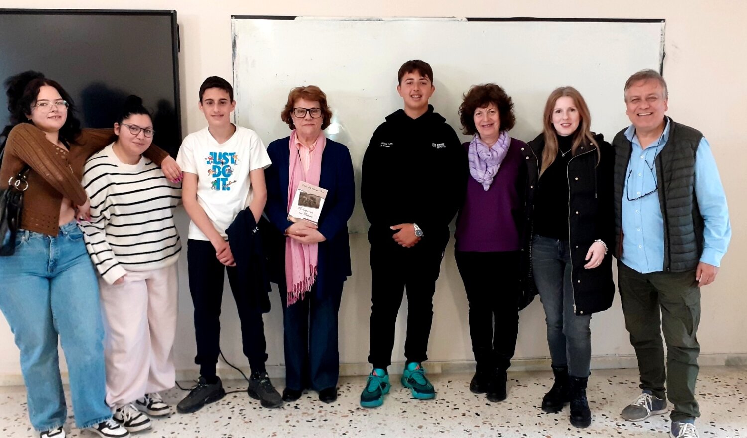 Ακολούθησε συζήτηση με μαθητές και μαθήτριες του σχολείου, οι οποίοι έδειξαν ιδιαίτερο ενδιαφέρον και τους ανέφερε τα προβλήματα που πρέπει να υπερβεί κάποιος, μέχρι να εκδοθεί ένα βιβλίο του. Αγαπούσε το διάβασμα από μικρή και αυτός ήταν ο κύριος λόγος που έγινε και εκπαιδευτικός. Φωτογραφήθηκε με τα παιδιά και στο τέλος, χάρισε ένα αντίτυπο του βιβλίο της στην βιβλιοθήκη του σχολείου.