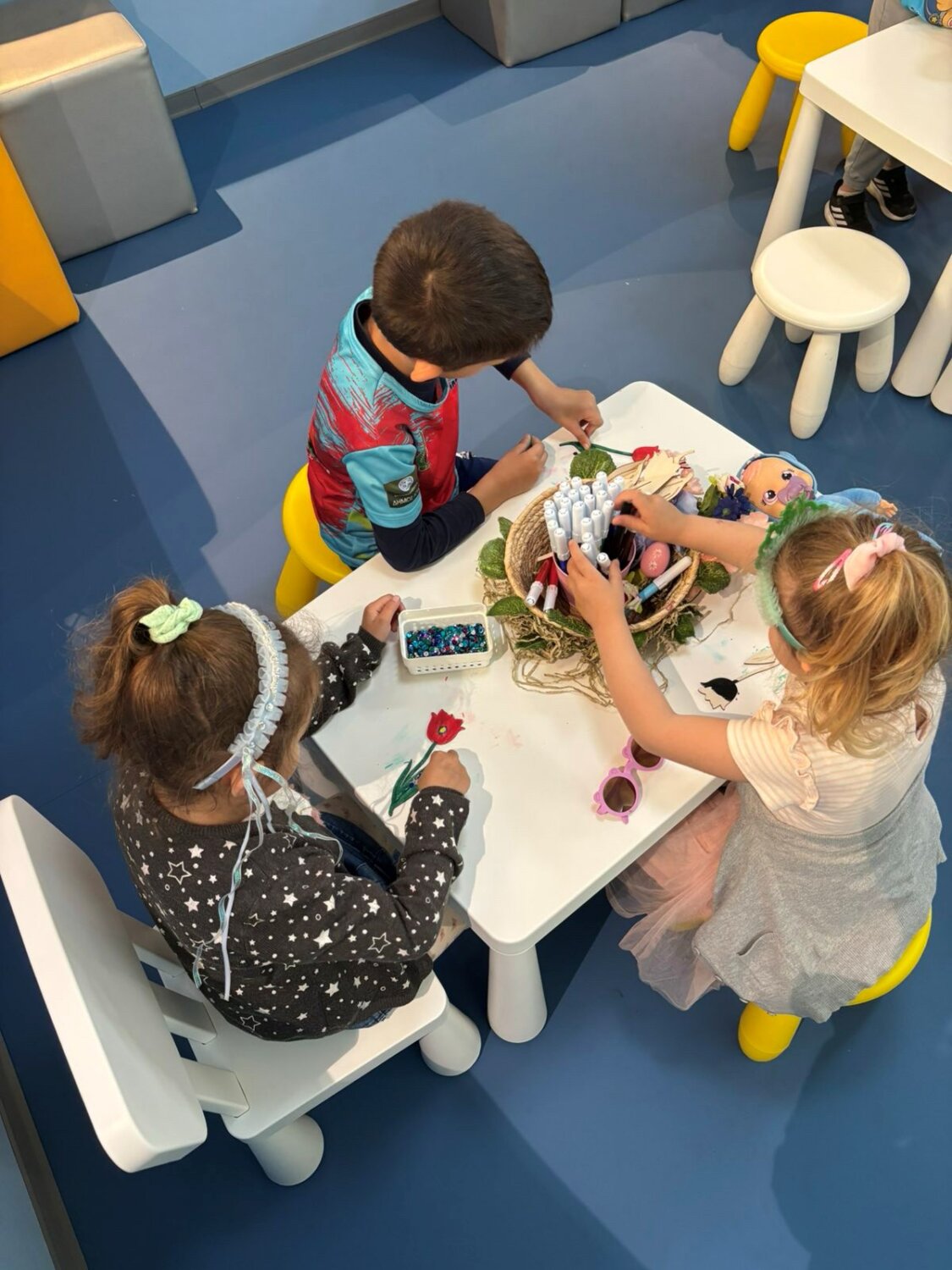 Τα παιδιά θα έχουν την ευκαιρία να μεταμορφωθούν μέσα από χρώματα και χαρούμενα σχέδια, σε μια δραστηριότητα που γεμίζει τον χώρο με ενέργεια, φαντασία και πολλά χαμόγελα.