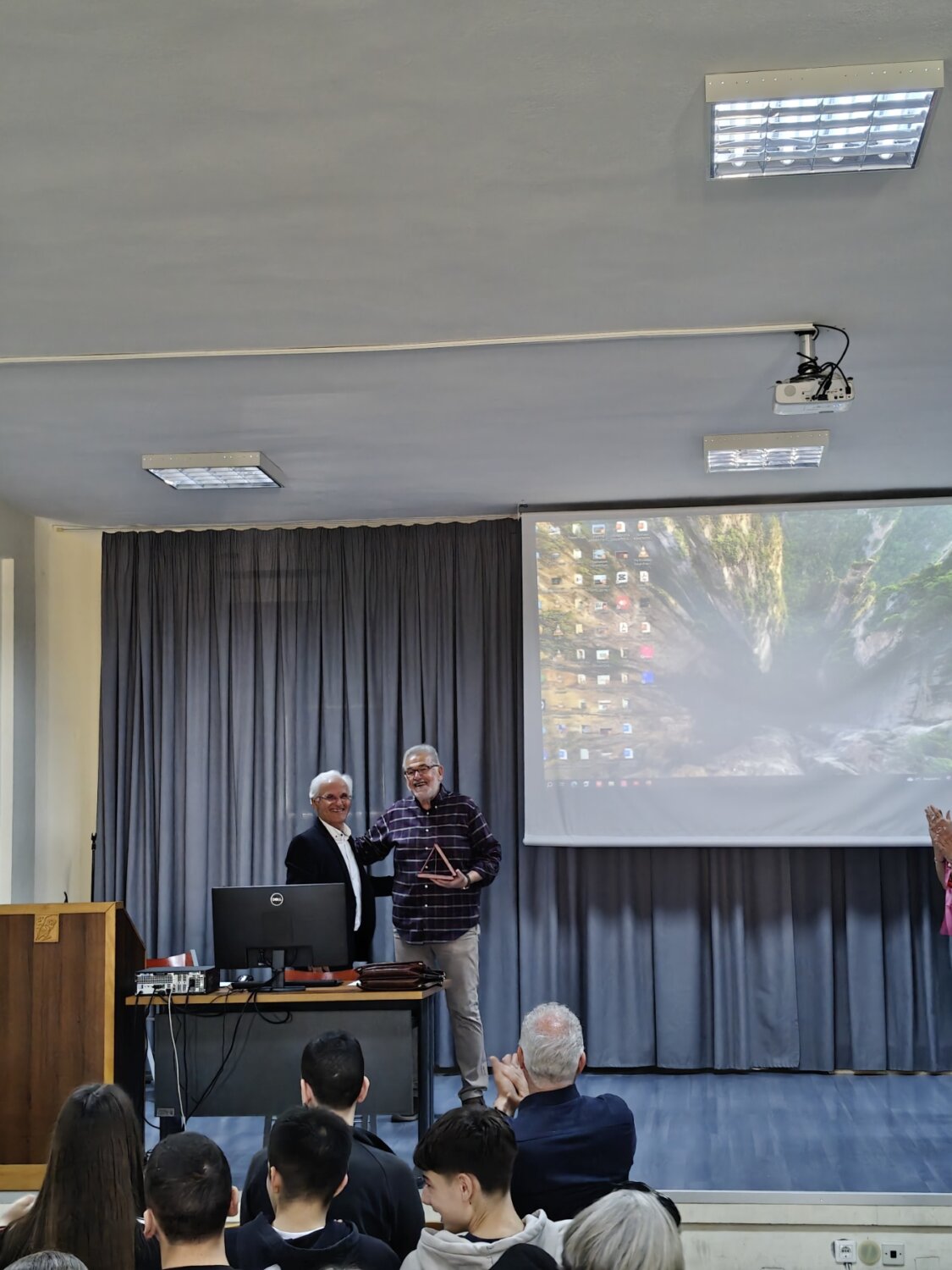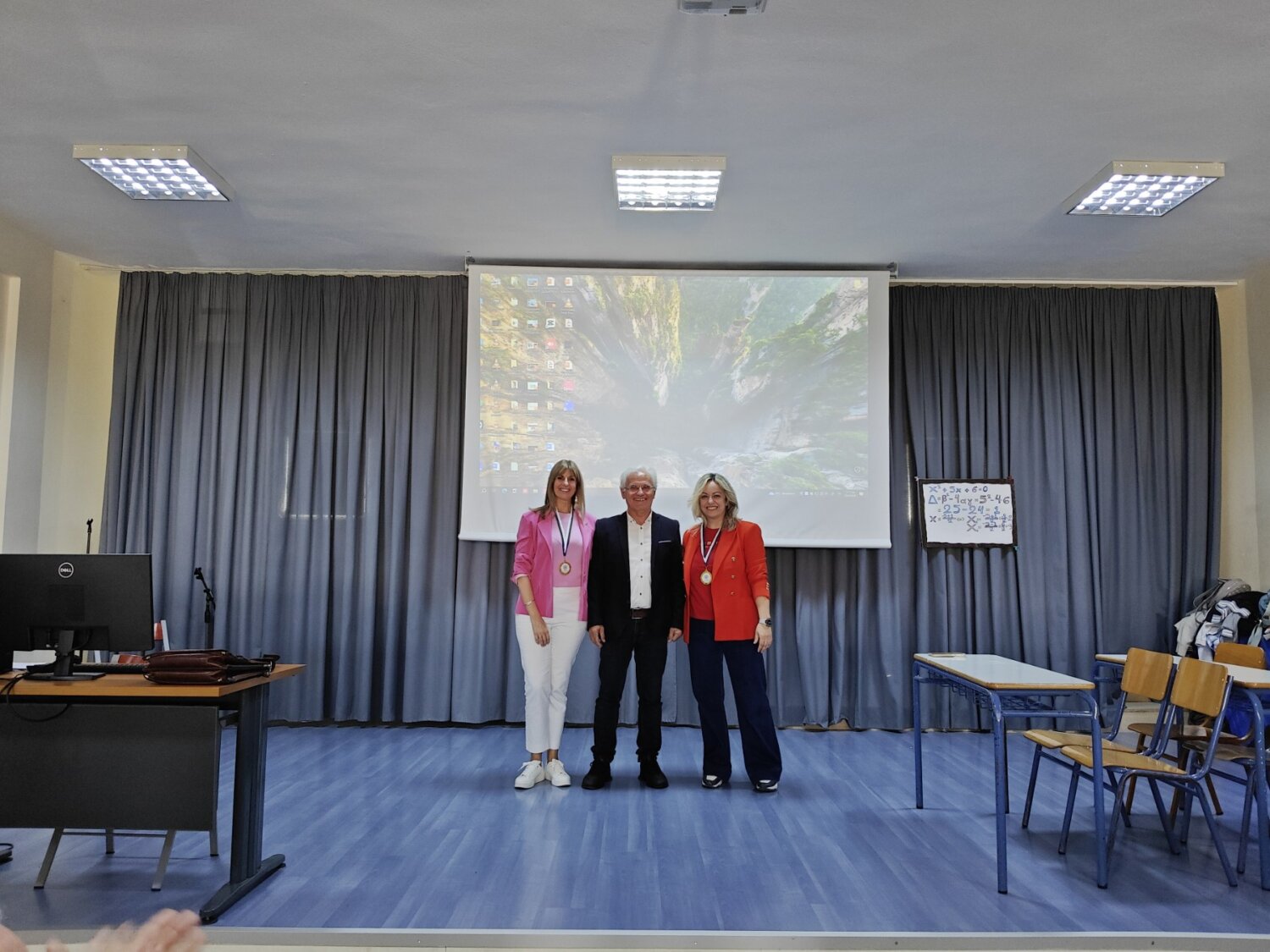 Σε κλίμα ιδιαίτερης συγκίνησης, ο κ. Κωνσταντίνος Μπουραζάνας απένειμε τιμητική πλακέτα στον Διευθυντή του σχολείου, κ. Μιχάλη Ζάχο, για την πολυετή και σπουδαία προσφορά του στην εκπαίδευση. Ο κ. Ζάχος, παραλαμβάνοντας την πλακέτα, εξέφρασε τις θερμές του ευχαριστίες προς όλους τους παρευρισκόμενους. Στη συνέχεια, βραβεύτηκαν οι Μαθηματικοί του σχολείου, κ. Έλενα Βάντη και κ. Ευαγγελία Κουτρομάνου, οι οποίες ήταν και οι υπεύθυνες για την άρτια διοργάνωση και υλοποίηση του Φεστιβάλ στο 15ο Γυμνάσιο. Ο κ. Μπουραζάνας ευχαρίστησε ονομαστικά τις εκπαιδευτικούς και όλους τους μαθητές του σχολείου για τη ζεστή τους φιλοξενία και τη συμμετοχή τους.