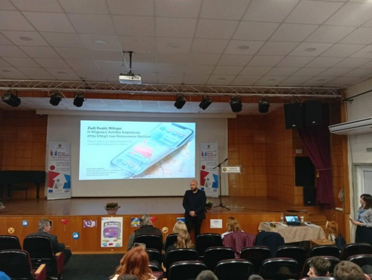 Ιδιαίτερη στιγμή αποτέλεσε η εισήγηση του Ανθυπαστυνόμου κ. Απόστολου Καψάλη, στελέχους της Διεύθυνσης Δίωξης Κυβερνοεγκλήματος, ο οποίος ενημέρωσε τους μαθητές/-τριες για τους κινδύνους του διαδικτύου και την ανάγκη προσεκτικής χρήσης των μέσων κοινωνικής δικτύωσης.