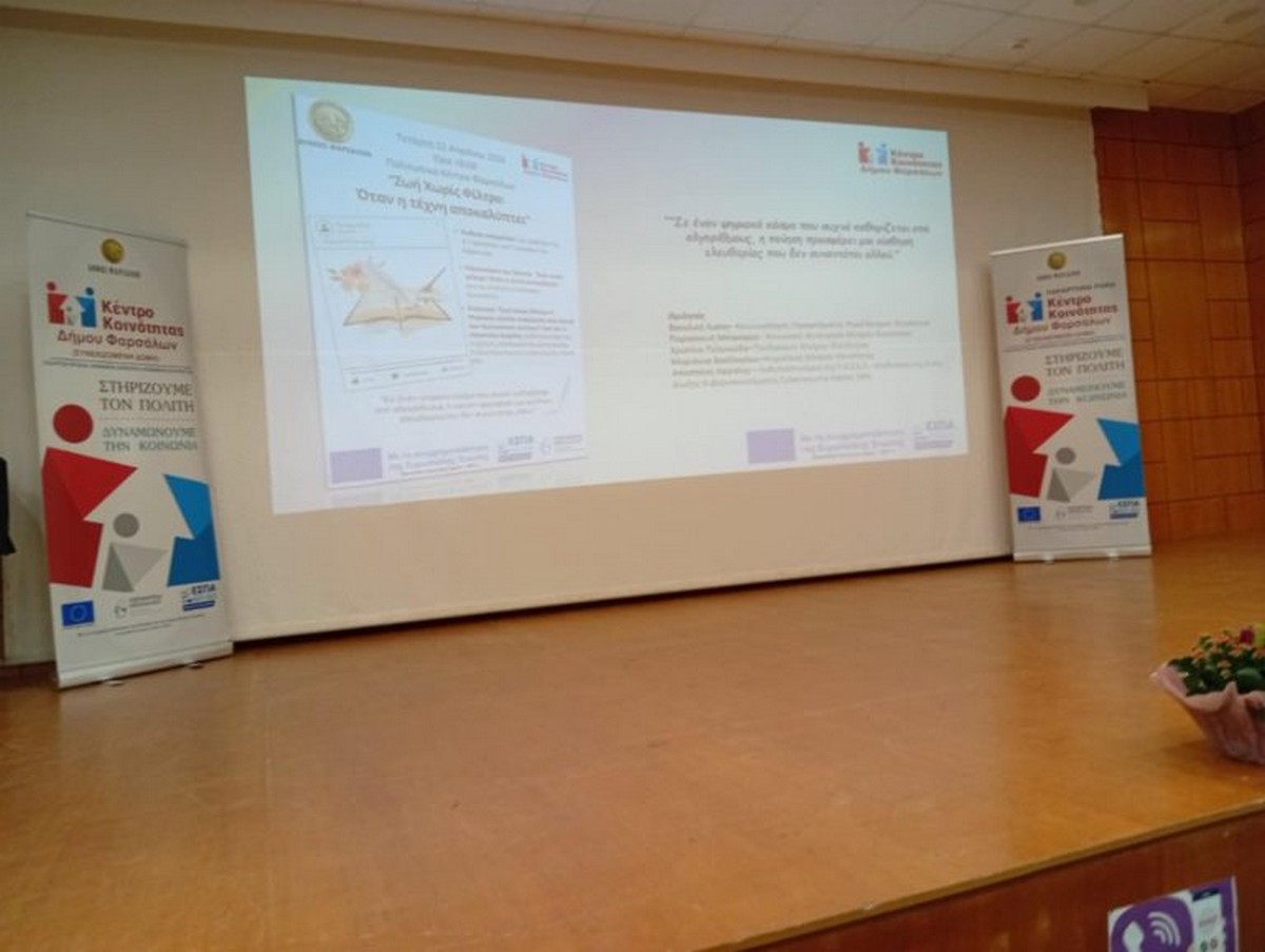 Την Τετάρτη 22 Απριλίου 2026, στο Πολιτιστικό Κέντρο Φαρσάλων, μαθητές και μαθήτριες της Α΄ τάξης των Γυμνασίων της περιοχής συμμετείχαν σε μια ξεχωριστή δράση με τίτλο «Ζωή χωρίς φίλτρο: Όταν η τέχνη αποκαλύπτει», που διοργάνωσε το Κέντρο Κοινότητας του Δήμου Φαρσάλων σε συνεργασία με τα σχολεία.