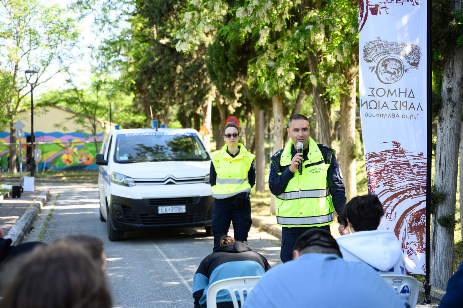 Στο Πάρκο Κυκλοφοριακής Αγωγής, οι μαθητές του Εν.Ε.Ε.ΓΥ.Λ. Λάρισας συμμετείχαν σε μια καλλιτεχνική και εκπαιδευτική δράση, δημιουργώντας πινακίδες κυκλοφοριακής αγωγής. Παράλληλα, πραγματοποιήθηκε ενημέρωση από το Τμήμα Τροχαίας Λάρισας για την οδική ασφάλεια και τη σημασία της σωστής κυκλοφοριακής συμπεριφοράς.