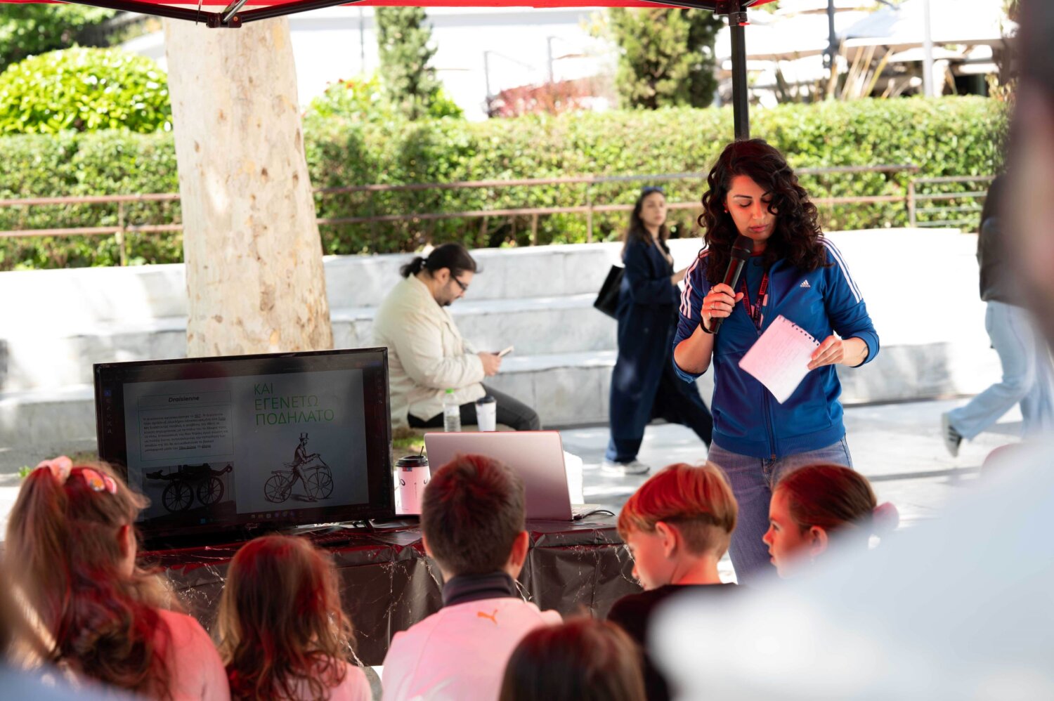 Τα παιδιά συμμετείχαν σε δημιουργικές κατασκευές, όπως ο σχεδιασμός κονκάρδας, γνώρισαν την ιστορία και την εξέλιξη του ποδηλάτου μέσα από διαδραστικές δράσεις, πήραν μέρος σε βιωματικά πειράματα παραγωγής ενέργειας κάνοντας πετάλι, ενώ απόλαυσαν εμπειρίες εικονικής πραγματικότητας με ποδηλατικές διαδρομές.
