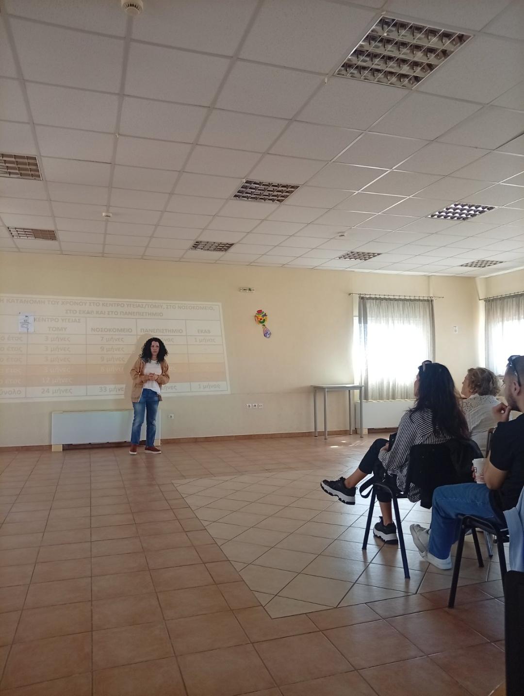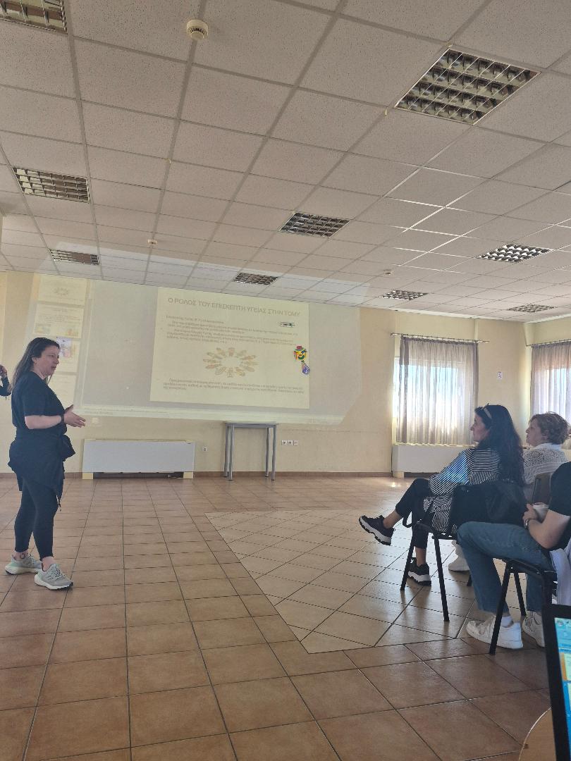 Οι Επαγγελματίες Υγείας της 1ης Τ.ΟΜ.Υ Αγίου Γεωργίου παρουσίασαν τον ιδιαίτερο ρόλο που διαδραματίζει ο καθένας στην Πρωτοβάθμια Φροντίδα Υγείας. Η Ιατρός Γενικής Ιατρικής κα. Αλμπανίδου Σοφία μίλησε για τον ρόλο του Οικογενειακού Ιατρού και τις σύγχρονες προκλήσεις της υγείας. Η Νοσηλεύτρια του Κέντρου Υγείας Λάρισας κα. Πάτα Μαρία αναφέρθηκε στον ρόλο του Νοσηλευτή και μοιράστηκε την εμπειρία της με τους συμμετέχοντες. Η κα. Καραρρήγα Μαρίνα Επισκέπτρια Υγείας της Δομής παρουσίασε τις δράσεις αγωγής και προαγωγής υγείας που απευθύνονται στην κοινότητα και στον μαθητικό πληθυσμό, καθώς και τη συμβολή των Επισκεπτριών στους εμβολιασμούς και στις κατ’ οίκον επισκέψεις.