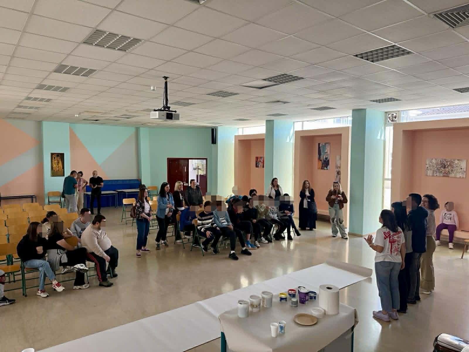 Η ημέρα ξεκίνησε στο φουαγιέ του Ε.Ε.Ε.ΕΚ. Σοφάδων, όπου οι μαθητές μοιράστηκαν κεράσματα και συζήτησαν, σπάζοντας τον «πάγο» μέσα σε ένα κλίμα εγκάρδιας φιλοξενίας. Στη συνέχεια, στο αμφιθέατρο του σχολείου, η θεωρία έγινε πράξη καθώς οι μαθητές και των δύο σχολείων ένωσαν τις δυνάμεις τους πάνω σε έναν κοινό μεγάλο καμβά, δημιουργώντας ένα συλλογικό έργο τέχνης που συμβολίζει την ενότητα και την ποικιλομορφία. Η δημιουργική αυτή διαδικασία συνοδεύτηκε από μελωδίες πιάνου, με το τραγούδι και τον χορό να απογειώνουν τη διάθεση όλων των παρευρισκομένων. Η δράση κορυφώθηκε στο νέο γήπεδο 5×5, όπου μέσα από αθλοπαιδιές και παιχνίδι, οι μαθητές καλλιέργησαν το ομαδικό πνεύμα και την ευγενή άμιλλα, επισφραγίζοντας με τον καλύτερο τρόπο αυτή τη σημαντική συνεργασία.