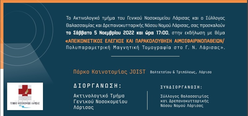 Η Διοίκηση και το Ακτινολογικό Τμήμα του Γενικού Νοσοκομείου Λάρισας σε συνεργασία με το Σύλλογο Θαλασσαιμίας & Δρεπανοκυτταρικής Νόσου Ν. Λάρισας