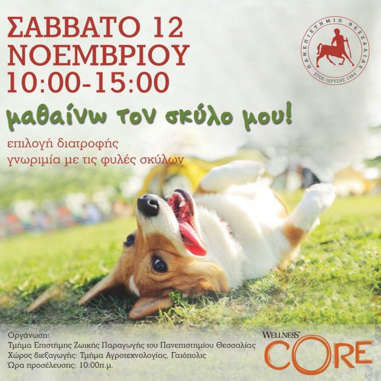 Εκδήλωση με τίτλο «Μαθαίνω τον σκύλο μου» πραγματοποιεί το Τμήμα Επιστήμης Ζωικής Παραγωγής του Πανεπιστημίου Θεσσαλίας. Θα συζητηθούν θέματα που αφορούν τις φυλές των σκύλων καθώς και θέματα διατροφής. Ημερομηνία διεξαγωγής: Σάββατο 12 Νοεμβρίου 2022. Χώρος διεξαγωγής: Τμήμα Αγροτεχνολογίας, Γαιόπολις, Λάρισα Ώρα προσέλευσης: 10:00