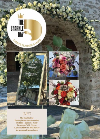 INFO The Sparkle Day Events planner and decoration Wedding - Baptism - Party Παπακυριαζή 64, Λάρισα Τ. 2411 175898 / m. 6982 523419 kerasinadox@hotmail.com