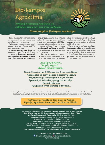 Το Bio-kampos Agroktima, ιστορείται οικοτεχνία µε σεβασµό στον άνθρωπο µόνος σου και τα καλλιεργείς µε καθαρό