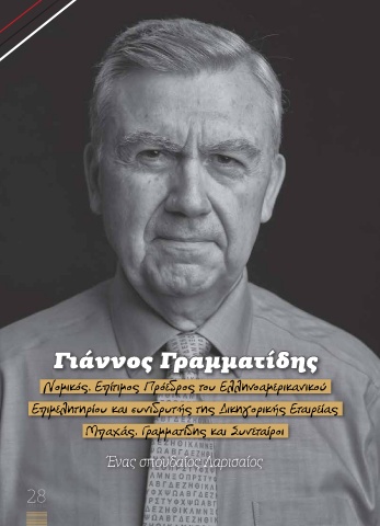 Γιάννος Γραµµατίδης Νοµικός, Επίτιµος Πρόεδρος του Ελληνοαµερικανικού Επιµελητηρίου και συνιδρυτής της ∆ικηγορικής Εταιρείας Μπαχάς, Γραµµατίδης και Συνεταίροι Ένας σπουδαίος Λαρισαίος 28 ΠΡΟΣΩΠΑ