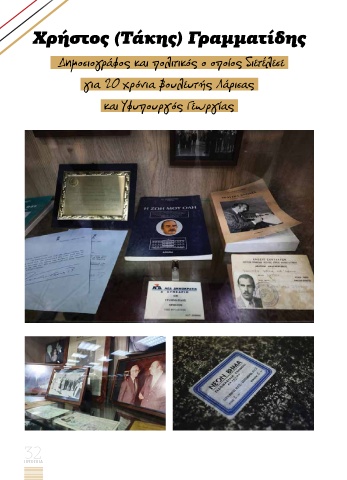 Χρήστος (Τάκης) Γραµµατίδης ∆ηµοσιογράφος και πολιτικός ο οποίος διετέλεσε για 20 χρόνια βουλευτής Λάρισας και Υφυπουργός Γεωργίας 32 ΠΡΟΣΩΠΑ