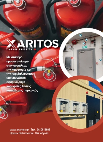Με σταθερό προσανατολισμό στην ασφάλεια, την καινοτομία και την περιβαλλοντική υπευθυνότητα, εφαρμόζουμε κορυφαίες λύσεις κατάσβεσης πυρκαγιάς www.exaritos.gr Ι Τηλ.: 2410618681 Ηρώων Πολυτεχνείου 184, Λάρισα