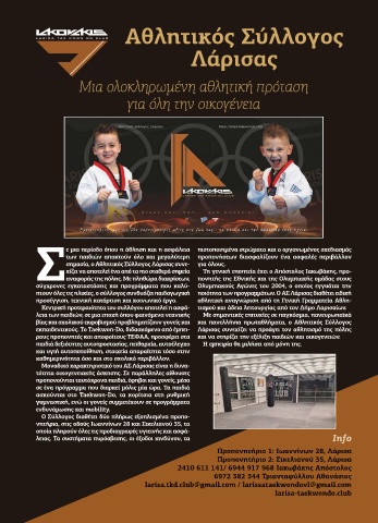 εκπαιδευτικούς. Το Taekwon-Do, διδασκόµενο από έµπει- Λάρισας συνεχίζει να προάγει τον αθλητισµό της πόλης
