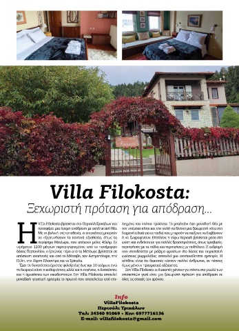 Villa Filokosta βρίσκεται στο ΠερτούλιΤρικάλων και λεγµένα και ντόπια προϊόντα. Το µπαλκόνι έχει µοναδική θέα µε