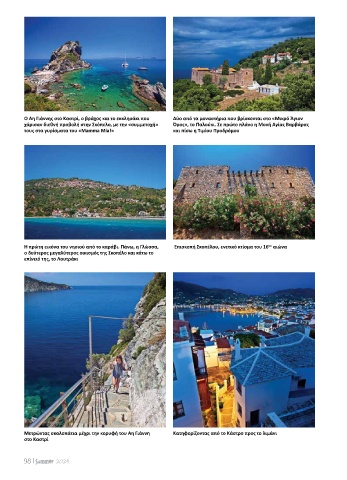 Η πρώτη εικόνα του νησιού από το καράβι. Πάνω, η Γλώσσα, Επισκοπή Σκοπέλου, ενετικό κτίσμα του 16 αιώνα